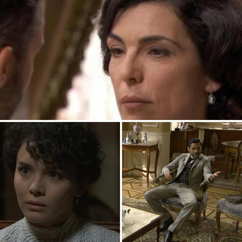 By chronić dziecko, zostawia je w przyklasztornym przytułku obiecując, że kiedyś po nie wróci. Sama wraz z matką udaje się do miasteczka, w którym mieszka jej brat, jednak po drodze stan jej zdrowia znacząco się pogarsza. Ratuje ją lekarz, który szybko zaczyna się nią interesować. Następnie Carmen i matka zmieniają tożsamość – od tej pory główna bohaterka nosi imię Manuela – i zatrudniają się jako pokojówki w budynku przy tytułowej Akacjowej 38.