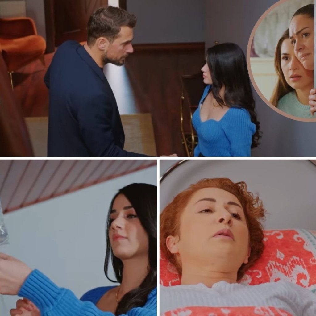 Yildiz i Sila stoją przy łóżku w pokoju Hulyi. Powietrze jest ciężkie, przesycone zapachem leków. Sila, pochylona nad łóżkiem, gładzi śpiącą kobietę po dłoni, wpatrując się w jej bladą twarz z bezradną troską.